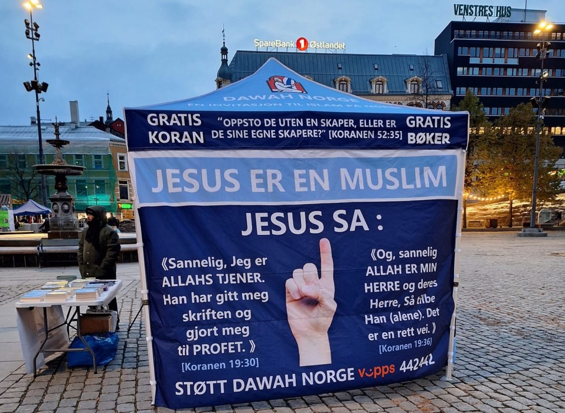 Jeg som en troende og praktiserende kristen i Norge reagerer sterkt på at en islamistisk organisasjon med navnet Dawah Norge misjonerer på de offentlige stedene for tiden med et budskap om at Jesus var en muslim.