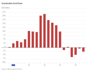 Investorer tok ut mer enn 14 milliarder dollar fra såkalte bærekraftige ESG-fond i 2022. Trenden fortsetter i 2023. De skuffende resultatene tømmer såkalte ESG-infiltrerte fond for midler. Inntjening viste seg å være viktigere enn woke.
