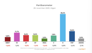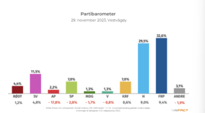 Norgesdemokratene får bedre oppslutning enn Ap på meningsmålingen. Ap faller med 17,8 prosentpoeng fra valget i september. Ap fikk en oppslutning i valget for to måneder siden på 20 prosent.