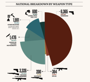 Angrepsvåpen utgjør en liten del av våpengruppen som defineres som rifler, som totalt sto for 364 drap i 2019. Antallet drept med pistoler og revolvere utgjorde over 6600. Faktisk ble flere amerikanere drept av knyttnever enn av angrepsvåpen. Også kniver utgjorde en langt større trussel sammenlignet med angrepsvåpen.