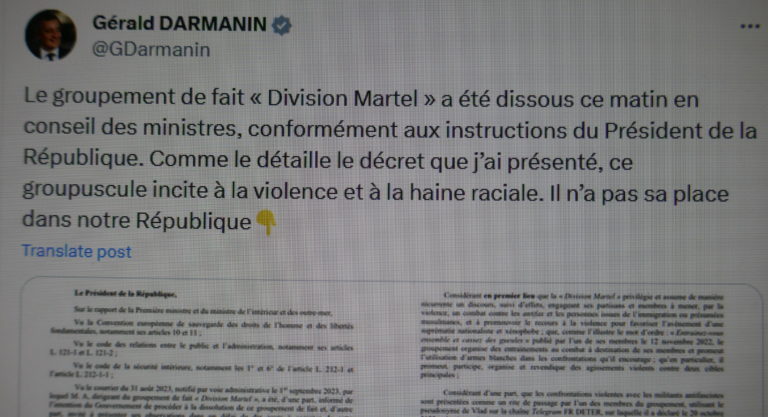 Frankrike forbyr en patriotisk gruppe etter angrepet i landsbyen Crépol, hvor 16 år gamle Thomas ble knivstukket til døde av en gjeng som ville drepe hvite mennesker.