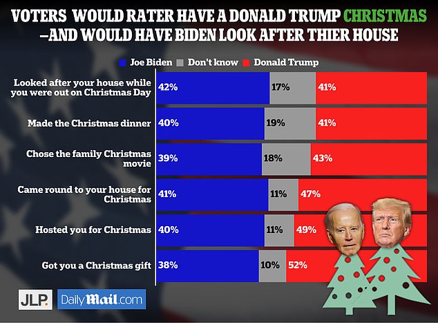 En meningsmåling utført av Daily Mail viser også at flertallet foretrekker å besøke Trumps hjem, få gave av den tidligere presidenten, at han velger julefilmen de skal se på og at han lager julemiddag for dem.