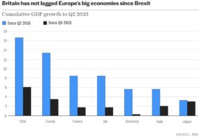 Hovedmålet med euroen virker å være å gjøre det umulig for land å forlate unionen, slik britene gjorde. Dessuten: Britisk økonomi er elendig, men utviklingen har ikke vært verre enn det eurosonen har opplevd siden bruddet i 2016.