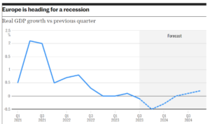 Frankrike gjennomgår ulike kriser non stop, landets BNP-vekst sank med 5,9 prosentpoeng fra 2021 til 2022. Riktignok bar dette preg av at 2021-veksten var knyttet til pandemien og nedstengninger. Men trenden er tydelig hvis man ser utviklingen noen tiår tilbake. Den franske statsgjelden er på over 112 prosent av BNP, verre enn de 85 prosentene britene må håndtere. Italy, Portugal, Spania og Belgiua har også en statsgjeld over 100 prosent av BNP.