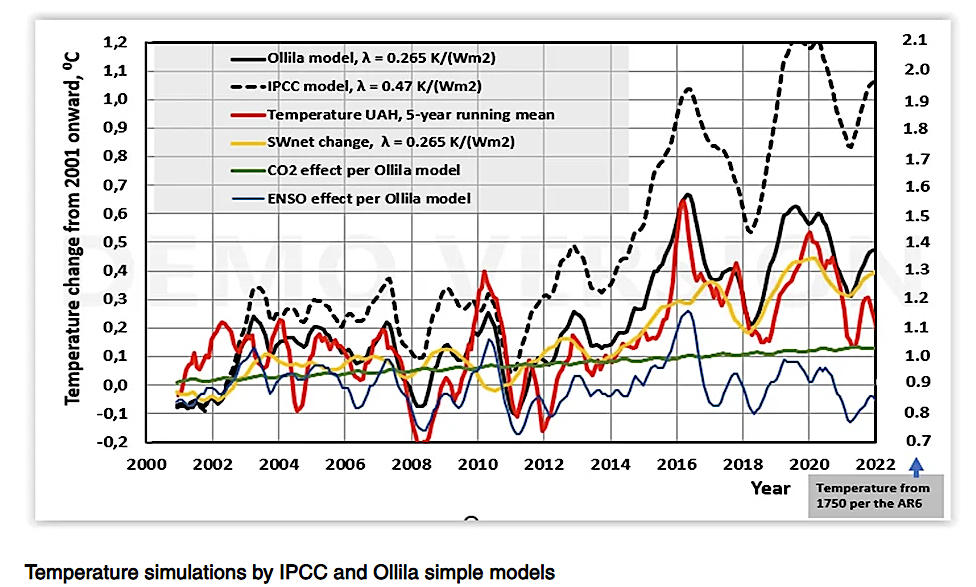 IPCC mener i sin siste rapport, AR6, at all oppvarming siden den lille istid sluttet på 1800-tallet skyldes øking i CO2, og at naturlige faktorer som sol og skyer ikke har hatt noen betydning.