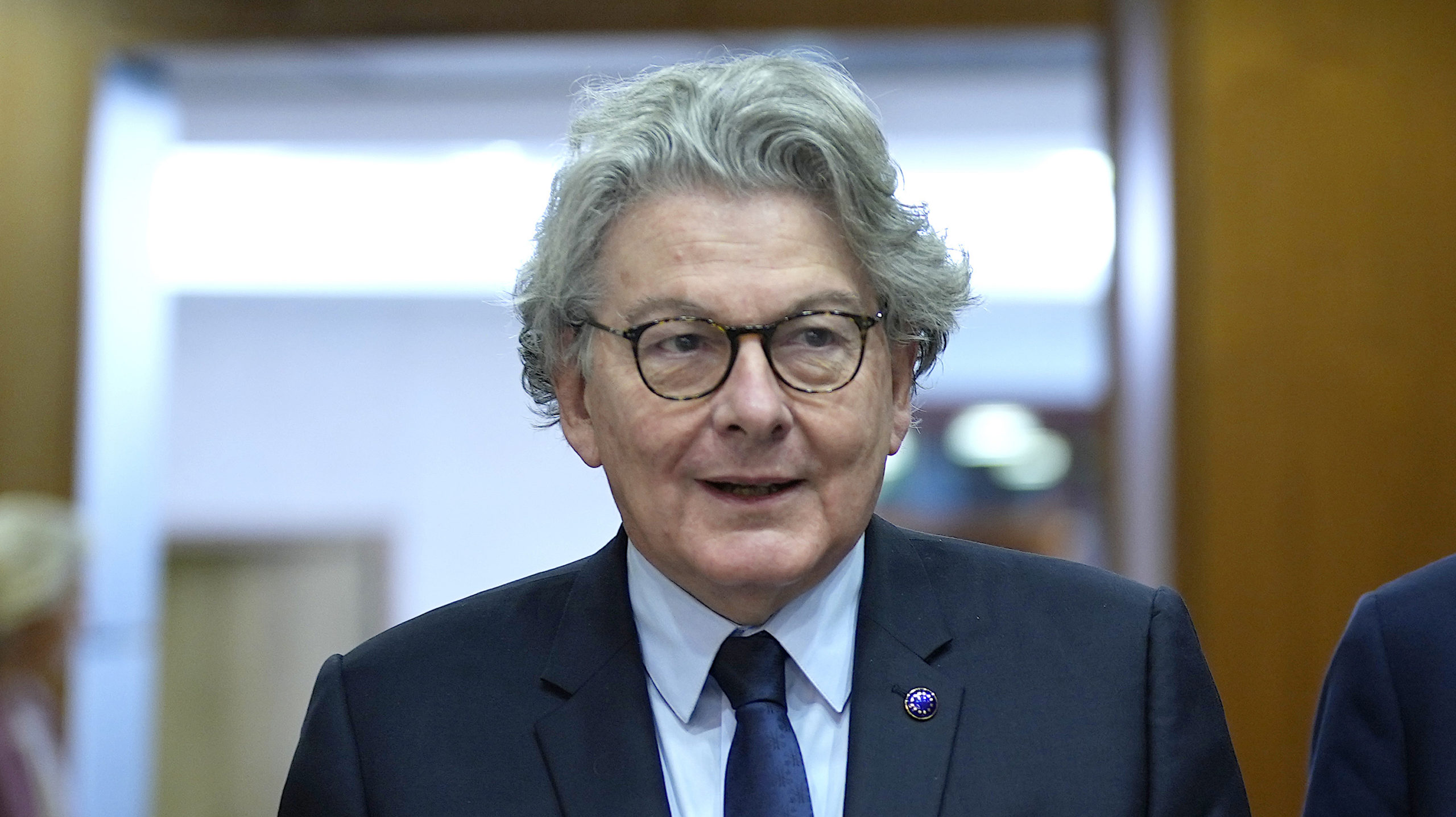 EU-kommissær for det indre marked Thierry Breton ankommer EU-hovedkvarteret i Brussel den 15. november 2023. Foto: Virginia Mayo / AP / NTB.