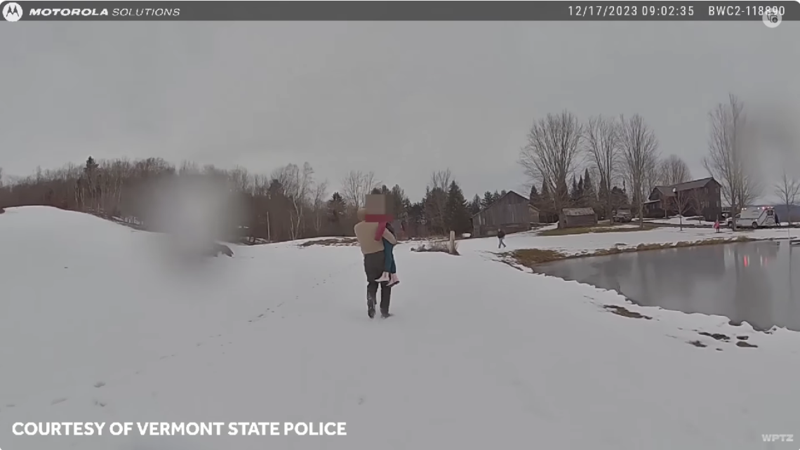 Body cam video: Vermont State Police Trooper dives into icy pond to save child.