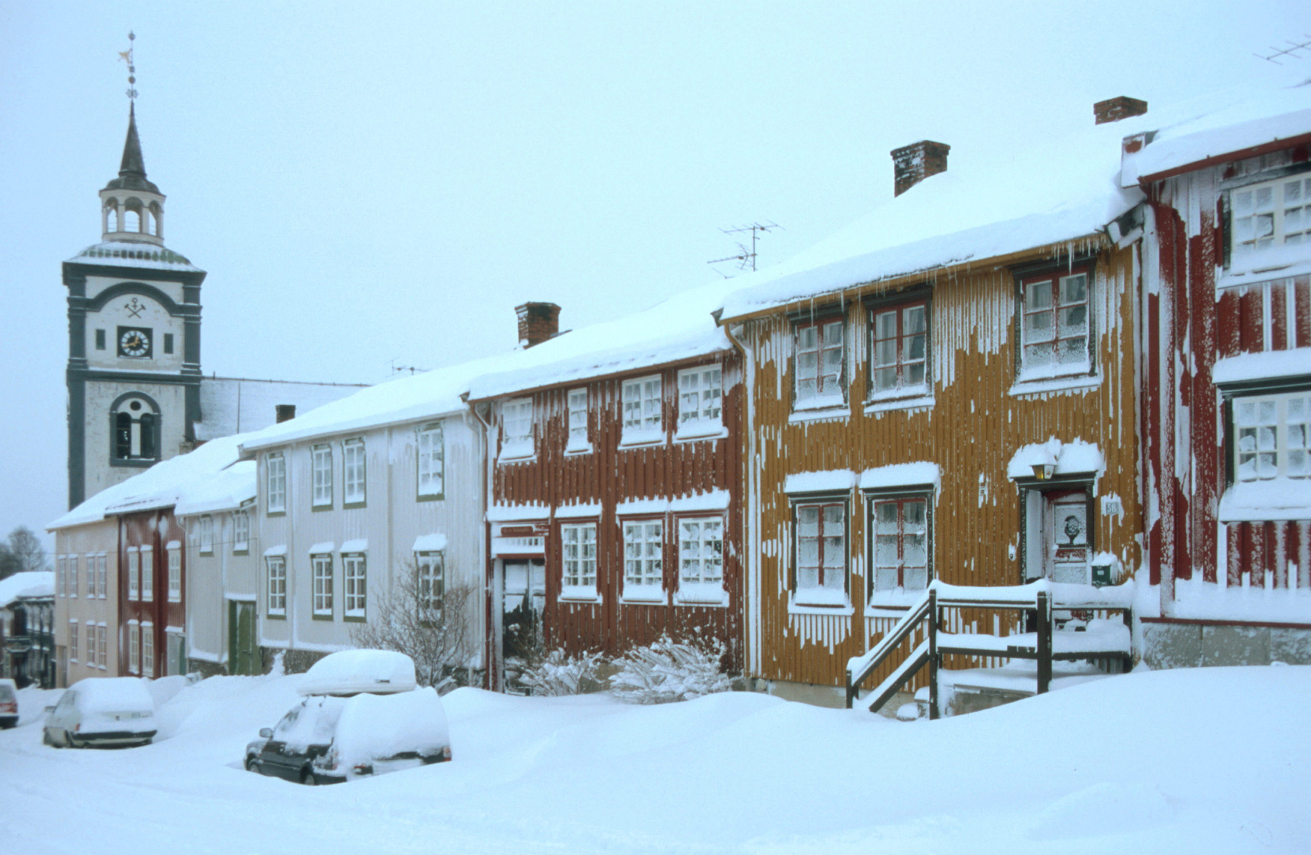 Restaurerte fasader i Kjerkgata, «Solbergrekka», Røros Bergstad verdensarvområde (1999). Foto: Trond Taugbøl/Riksantikvaren
