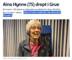Som ventet jobber NRK iherdig for å menneskeliggjøre drapsmannen fra Afghanistan, som er svært nedbrutt på grunn av det inntrufne. Som alle drapsofre før henne vil Aina Hynne snart forsvinne fra nyhetsbildet, og mediene vil heretter i all hovedsak fokusere på velværet og psyken til hennes morder. Det er så tragisk at det er vanskelig å finne ord for det.