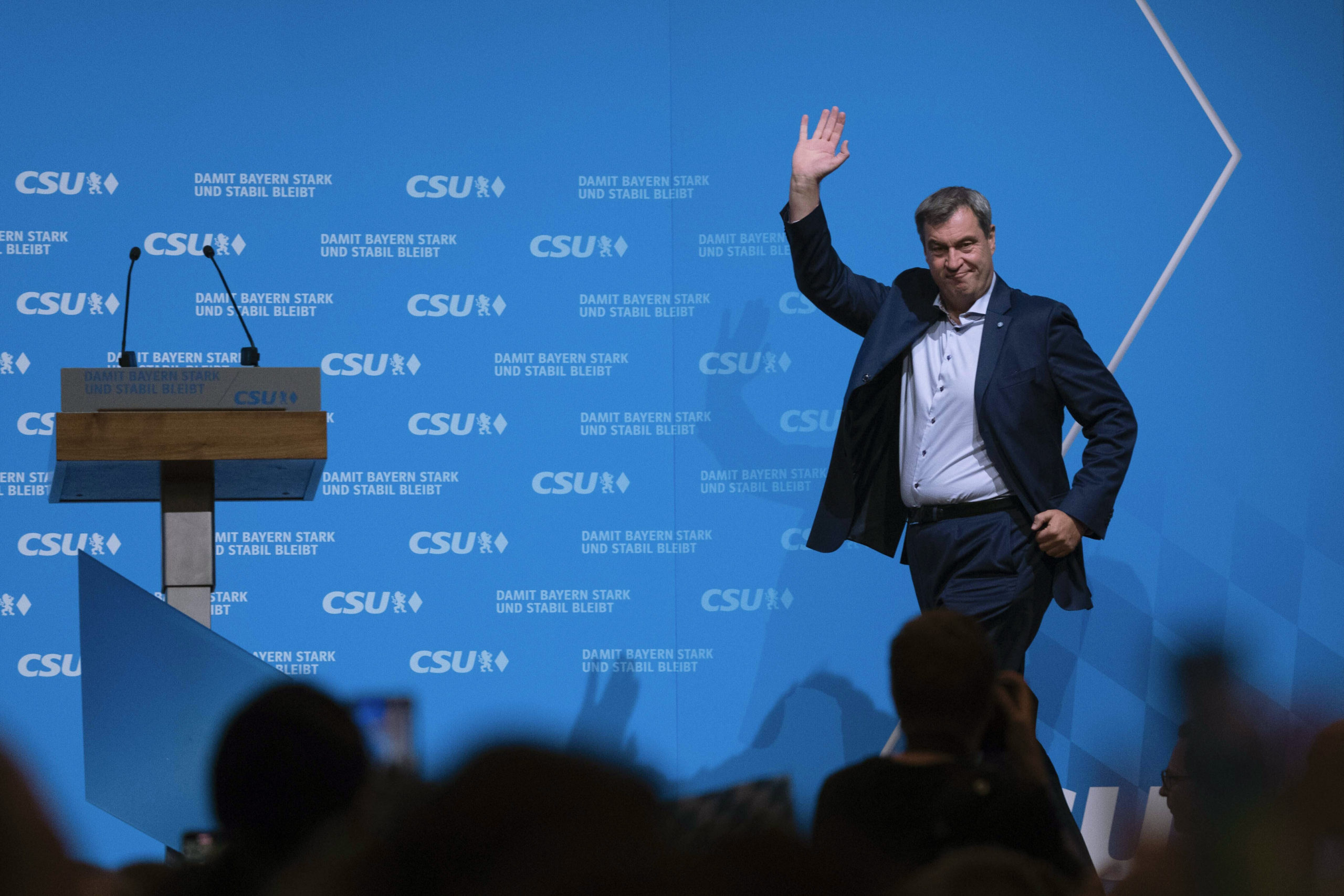 CSU-leder Markus Söder under et valgkampmøte før delstatsvalget i Bayern den 8. oktober 2023. Foto: Matthias Schrader / AP / NTB.
