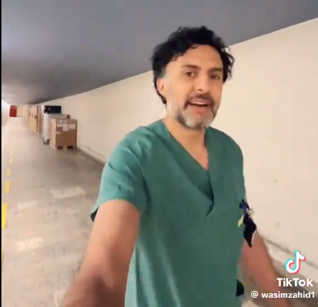 I et klipp lagt ut på TikTok spaserer Wasim Zahid i en tunnel under sykehuset han jobber på. Slik antyder han at tunneler under sykehus er helt normalt.