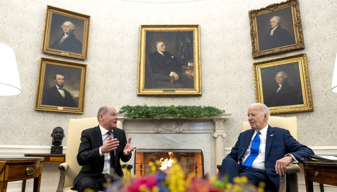 Finnes et bedre bilde på Vestens tilstand enn disse to sammen? Olaf Scholz leder en historisk svak og upopulær regjering som avindustrialiserer Tyskland med klimapolitisk galskap, og ikke løfter en finger mot den vedvarende masseinnvandringen. Joe Biden har åpnet USAs sørgrense for like ødeleggende masseinnvandring, er selv både i woke- og klimavanviddets vold, og skal nå prøve å overbevise velgerne om at han er mentalt skikket til å være president selv om han er mentalt uskikket til en rettssak. Den ene sprengte Nord Stream, den andre fant seg i det. Gutta på veggen bak disse to kan neppe være særlig fornøyd med det de ser, og bringer tankene hen på dette uttrykket: Harde tider gir sterke menn, sterke menn gir gode tider, gode tider gir svake menn, svake menn gir harde tider. Solnedgangen for disse to er også Vestens solnedgang. Og gudene vet når den står opp igjen. Foto: Andrew Harnik / AP / NTB.