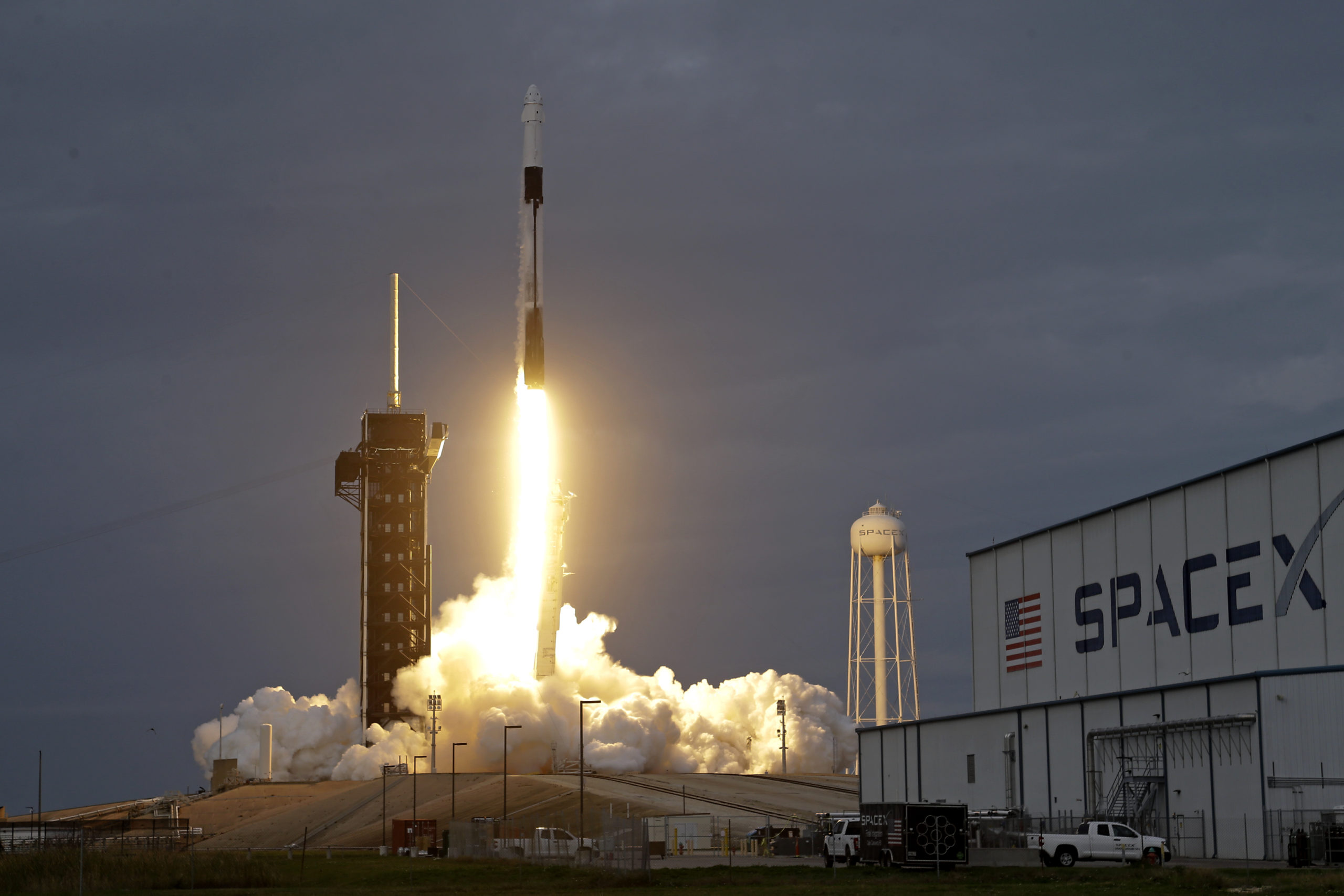 SpaceX skyter opp en Falcon 9-rakett med fire astronauter på vei til den internasjonale romstasjonen, fra Kennedy Space Center i Cape Canaveral, Florida, den 18. januar 2024. Foto: John Raoux / AP / NTB.