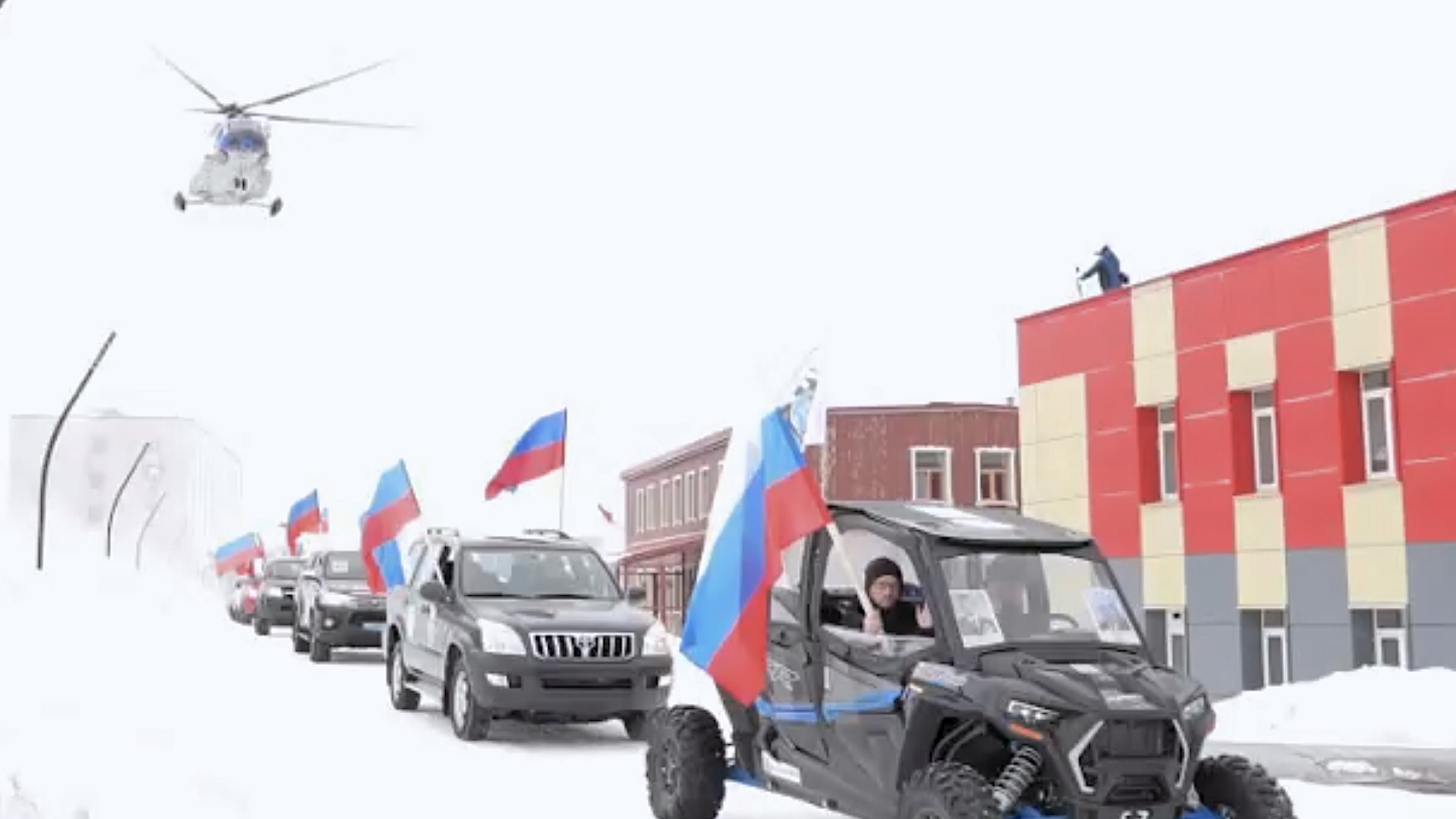 I lufta var et Mi8 helikopter, og bak Chemerilos svarte Toyota landcruiser fulgte mer enn 50 kjøretøy, inkludert lastebiler, traktorer og snøscootere.