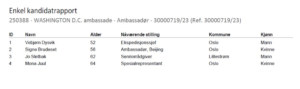 Søkerlisten til stillingen som ambassadør i USA. FB/ Aas
