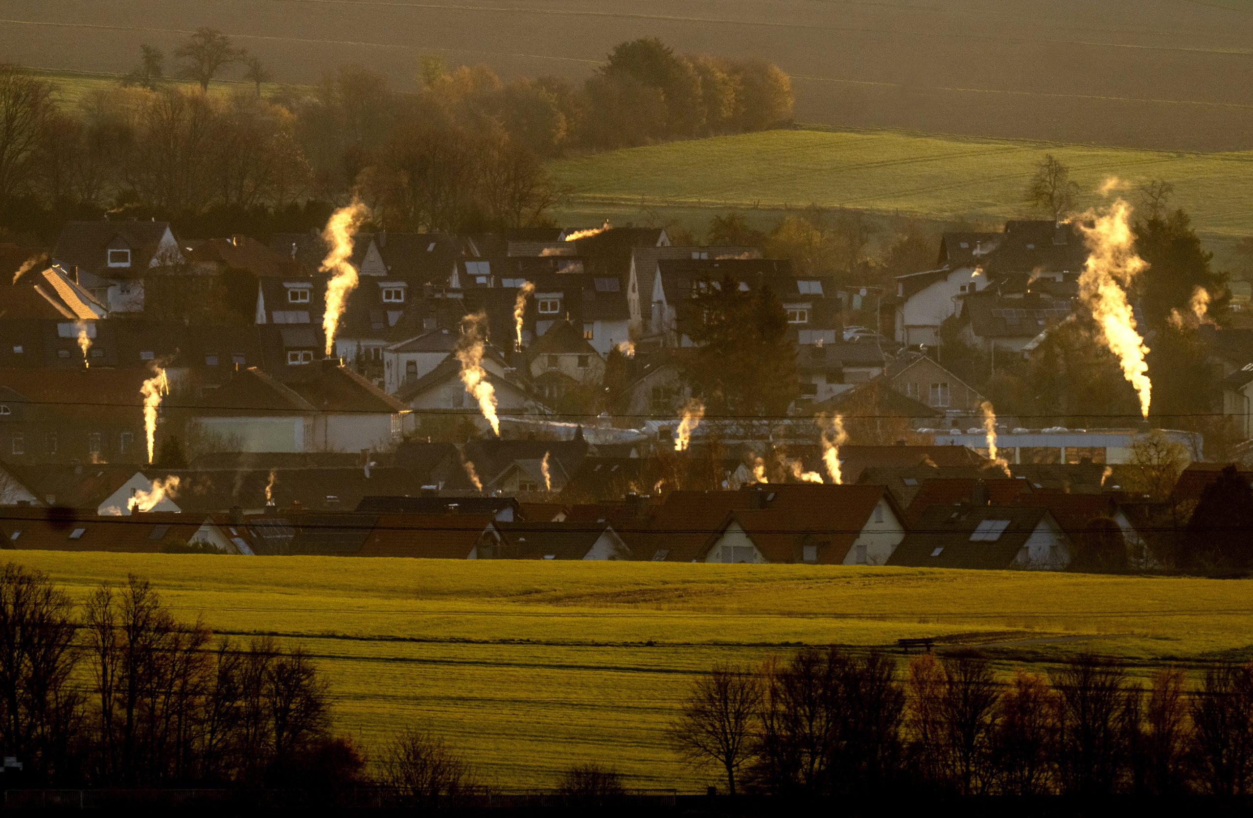Røyk stiger opp fra huspiper i Wehrheim utenfor Frankfurt den 4. april 2023. Foto: Michael Probst / AP / NTB.