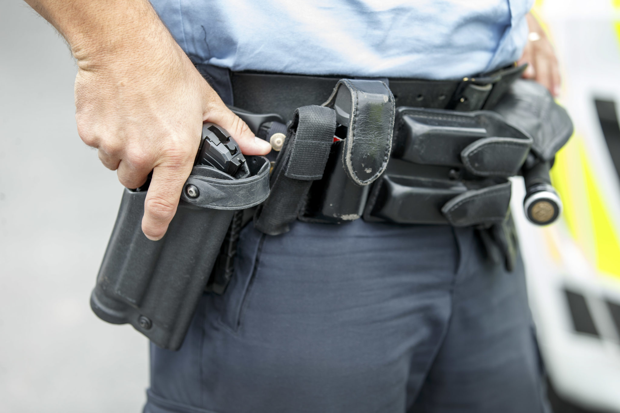 Det er funnet flere kulehull i en dør og en person er sett løpende fra stedet.