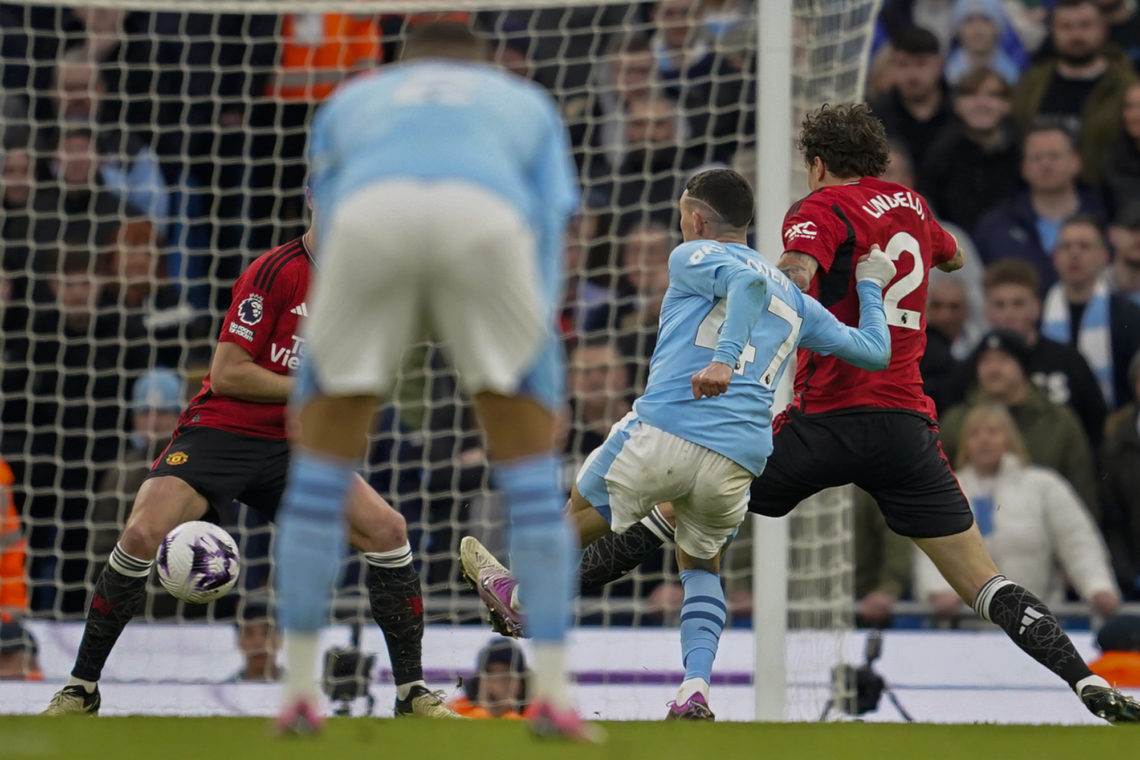 Så scorer Foden sitt andre mål for dagen, og City har som forventet snudd kampen. Foden har scoret seks ganger på de fire siste kampene mot byrivalen.