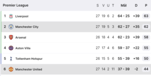 Nå henger United litt i tauene, men City er for dårlig i avslutningene. De klarer bare å skape noen få gode sjanser, og disse klarer de ikke å utnytte. Tilhengerne til Arsenal og Liverpool føler nok et ørlite håp på dette tidspunktet. Men det er nesten en time igjen av kampen, så her sprettes ikke champagnen ennå.