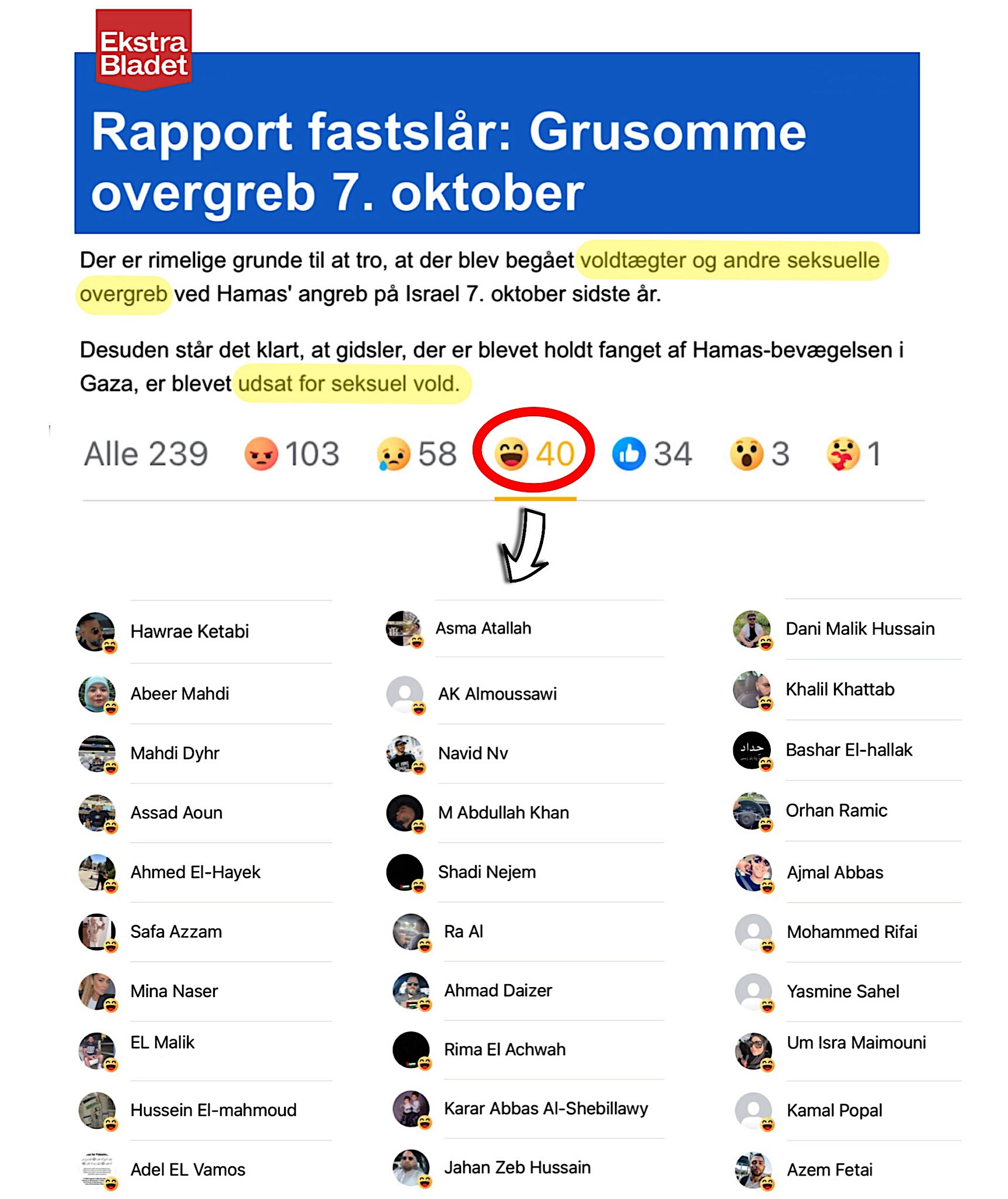 Se godt på denne gruppen av innvandrere fra muslimske land. De har valgt en «smiley» fordi de synes det er festlig at jødiske kvinner er blitt utsatt for voldtekt og seksuelle overgrep av muslimske terrorister.