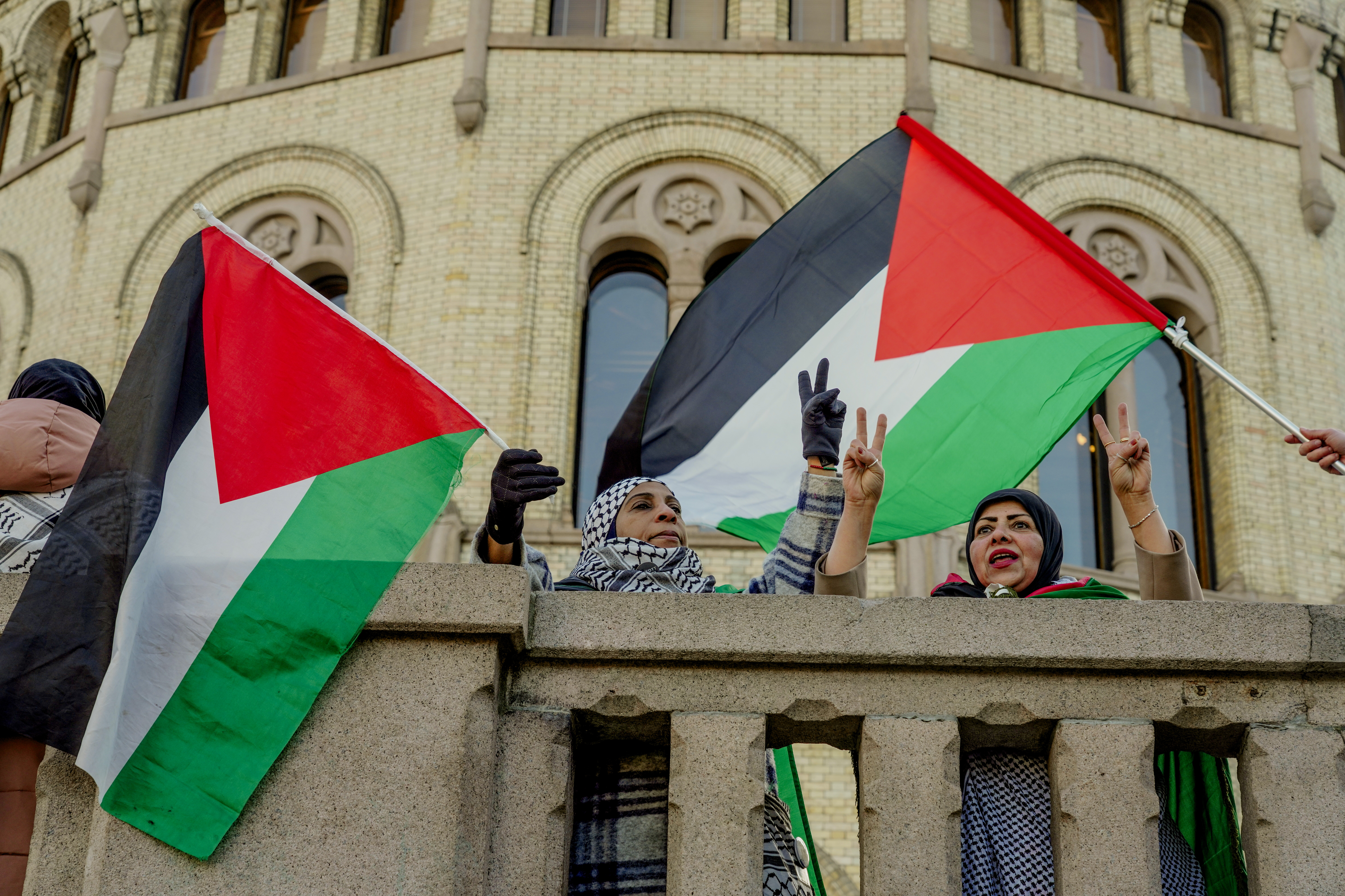 Aksjonsgruppa for Palestina demonstrerer utenfor Stortinget i Oslo 7. mars 2024. Foto: Ole Berg-Rusten / NTB