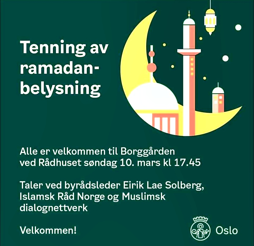 «Tenning av ramadanbelysning. Alle er velkommen til Borggården ved Rådhuset søndag 10. mars kl 17.45. Taler ved byrådsleder Eirik Lae Solberg, Islamsk Råd Norge og Muslimsk Dialognettverk», står det på plakaten for den islamske lystenningen i Oslo. Lae Solberg er byrådsleder fra Oslo Høyre. Han er ikke bare glad i å feire islam, men også Pride.
