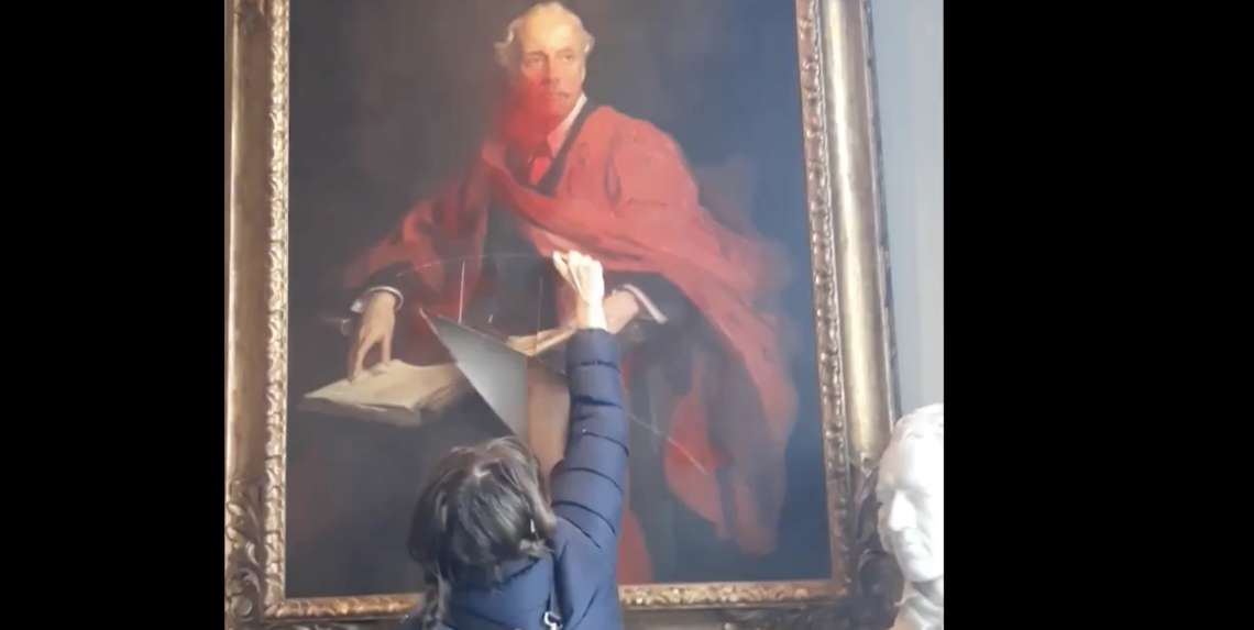 BREAKING: Palestine Action spray and slash a historic painting of Lord Balfour in Trinity College, University of Cambridge.