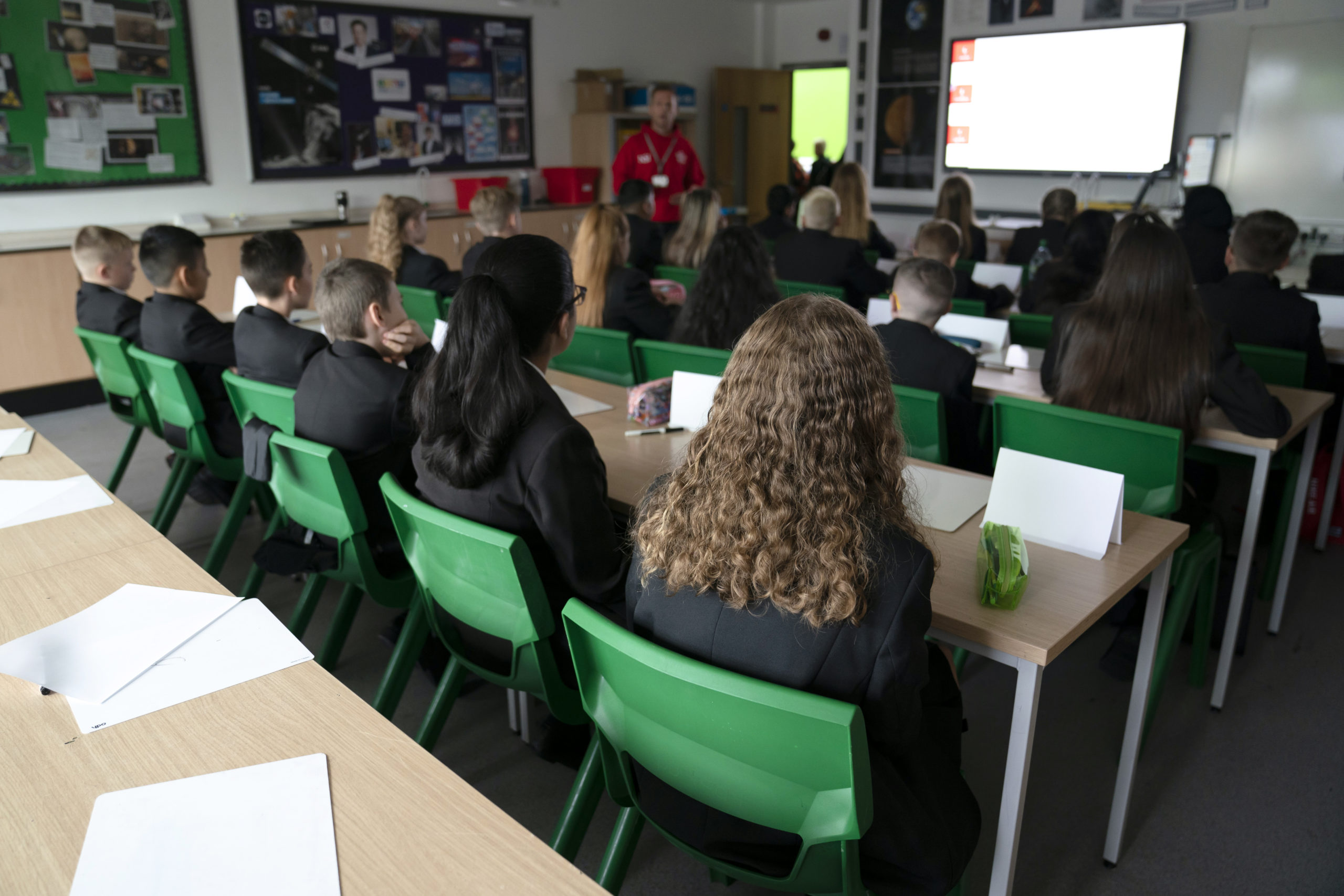 Fra en sjuendeklasse ved Great Academy Ashton i Manchester 3. september 2021. Foto: Jon Super / AP / NTB