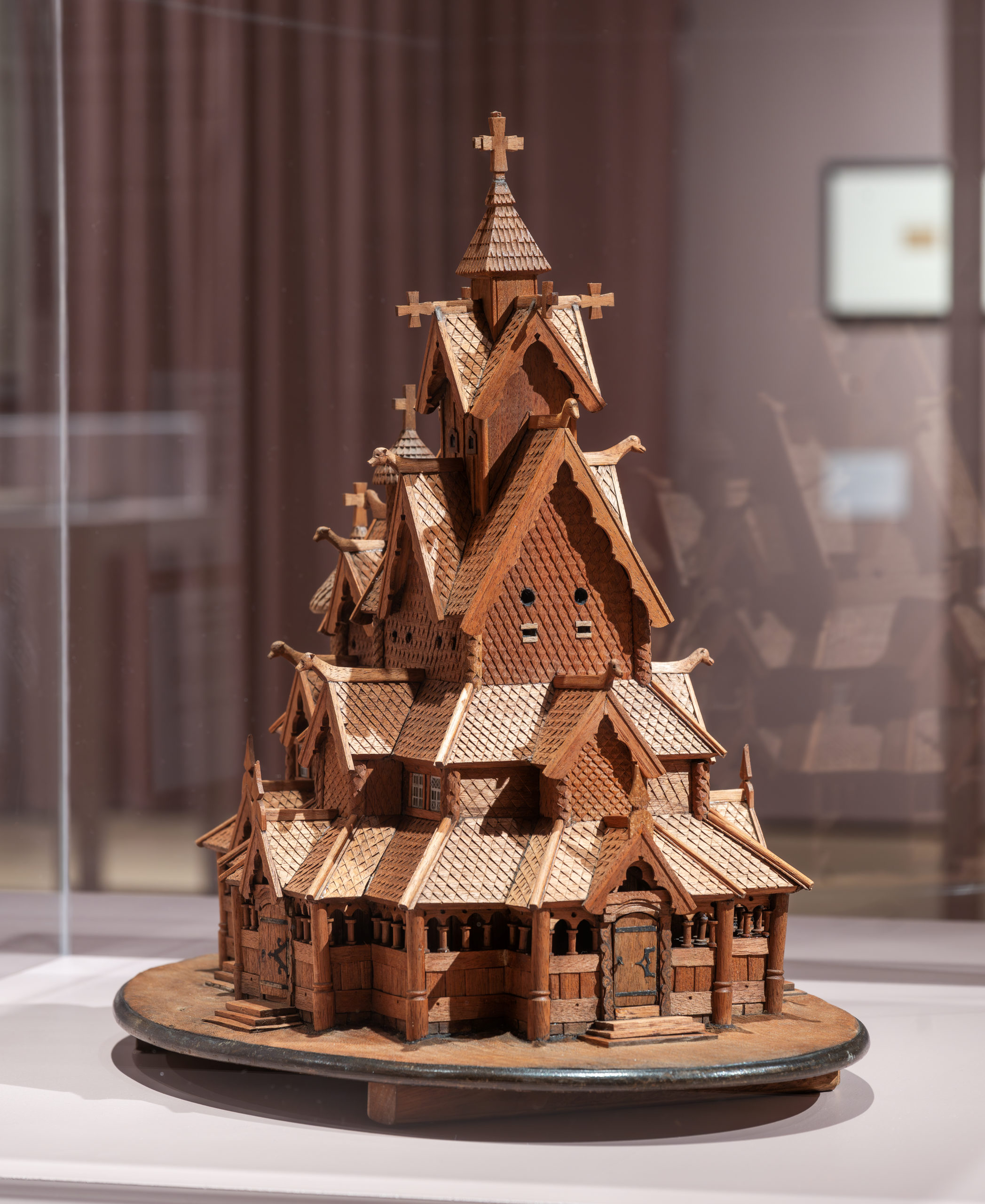 Modell av Heddal stavkirke, Drager og laft. Foto: Børre Høstland / Nasjonalmuseet