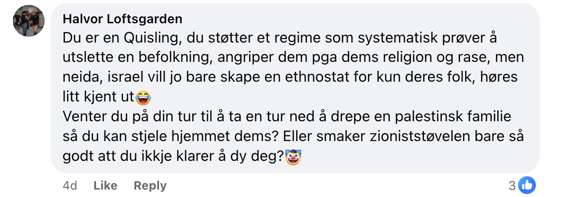 Halvor Loftsgarden tror også at Amundsen drømmer om å drepe palestinere, men antyder selv en drøm om å se Amundsen henrettet ved Akershus festning: