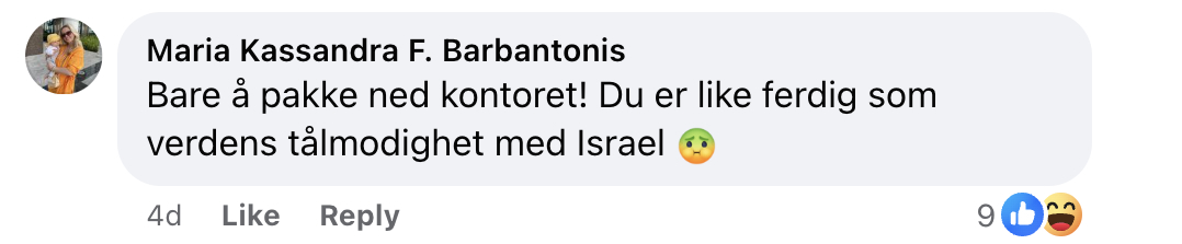 Maria Kassandra F. Barbantonis ser frem til såvel Israels som Amundsens kansellering: