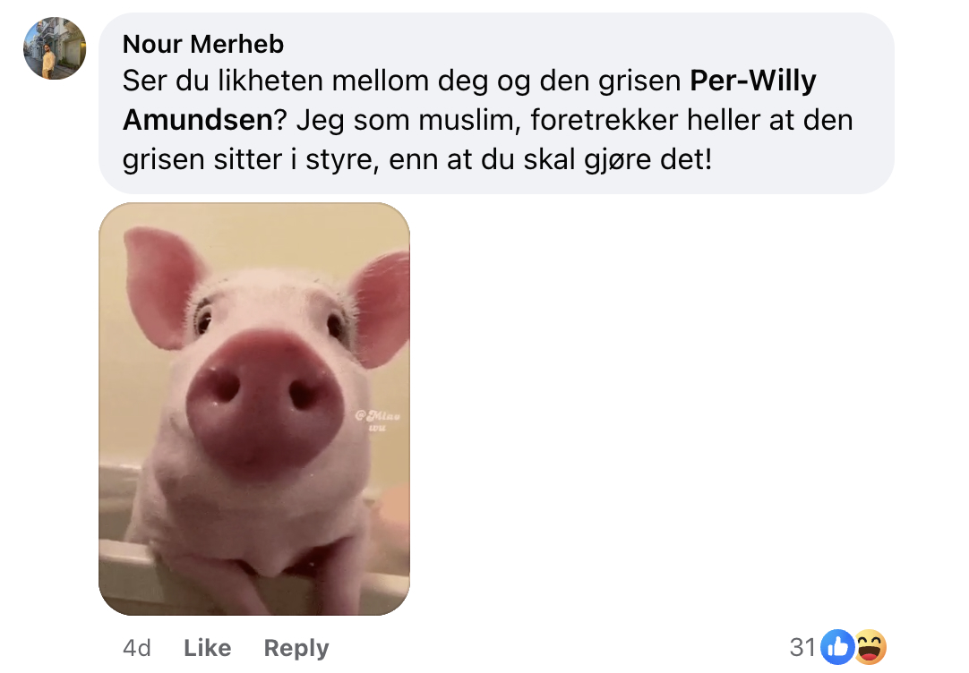 Nour Merheb sammenligner Amundsen med en gris: