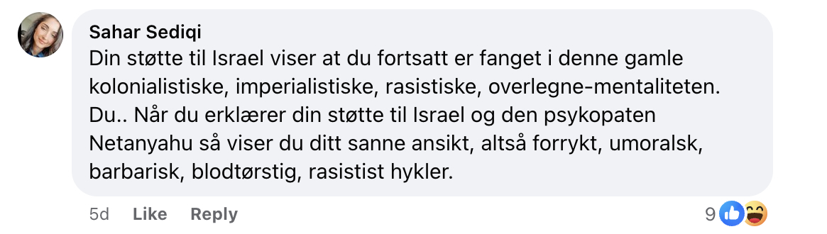 Sahar Sediqi mener også å merke at Amundsen ønsker seg vold og blod: