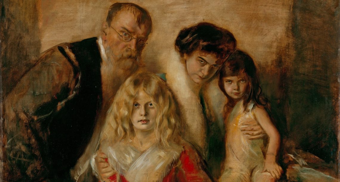 De avbildede personer er fra venstre kunstneren selv, datteren Marion, hans annen ektefelle Charlotte (Lolo), f. von Hornstein, og datteren Gabriele.