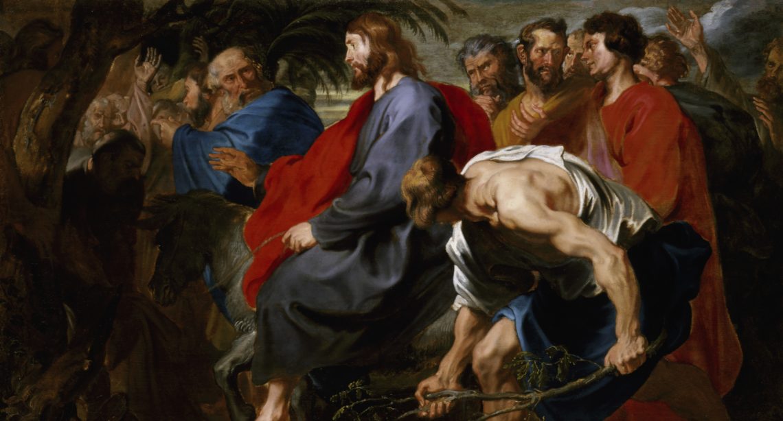 Og de førte folen til Jesus, og la sine klær på den; og han satte sig på den. Og mange bredte sine klær på veien, andre løvkvister, som de hadde hugget på markene. Og de som gikk foran, og de som fulgte efter, ropte: Hosianna! Velsignet være han som kommer i Herrens navn! Velsignet være vår far Davids rike som kommer! Hosianna i det høieste!