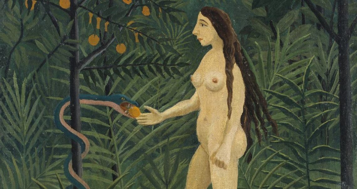 Historien om Adam, Eva og Hageslangen finner vi i Første Moseboks tredje kapitel, og det er muligens en av de oftest illustrerte bibel-beretninger i den kristne kulturkrets. En av de tidligste finner vi i Junius Bassus-sarkofagen (d.359) i Vatikanet, i annet felt fra venstre nederst.