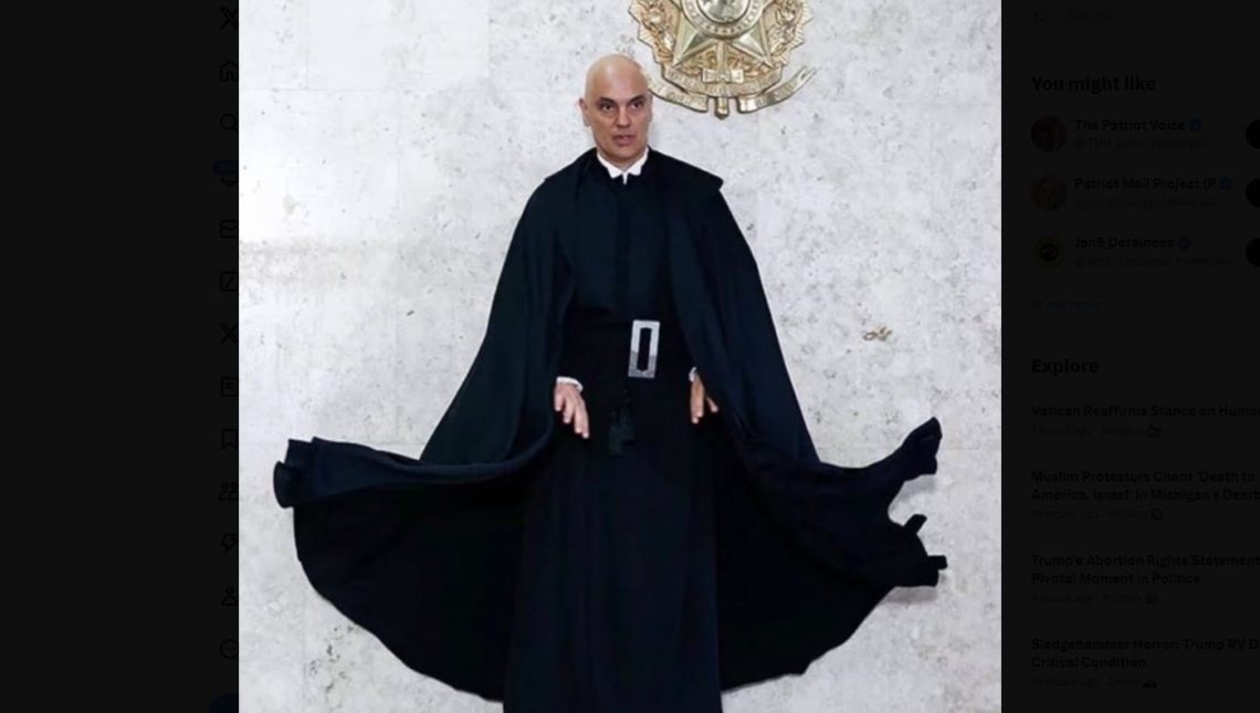 Moraes er president for den øverste valgdomstolen og har makt til å sende folk i fengsel uten dom. Han etterforsker både tidligere president Jair Bolsonaro og deltagerne i den store demonstrasjonen ved kongressen i Brasilia 8. januar 2023. En demonstrasjon som konsekvent omtales som et «angrep» og «kuppforsøk». Ikke ulikt «stormingen» av kongressen i Washington D.C. i 2021.