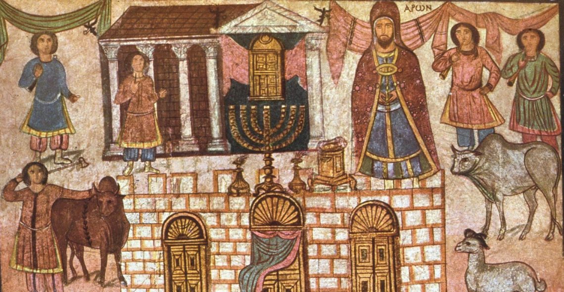 Ved siden av det store figuren øverst til høyre er det skrevet Arón med greske bokstaver, og det mer enn antyder at bildet er utført av (ukjente) helleniserte jøder.