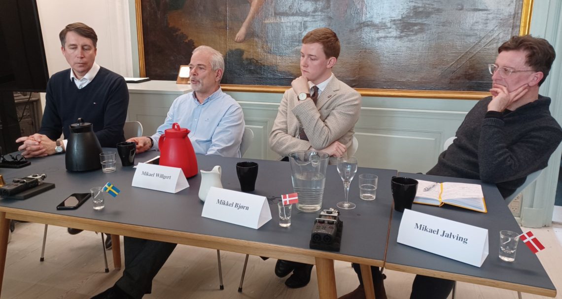 Fra Danmark deltok forfatter Mikael Jalving og politiker Mikkel Bjørn, som representerer Dansk Folkeparti (DF) i Folketinget. Fra Sverige deltok Mikael Willgert, journalist for den uavhengige mediekanalen Swebbtv, pluss politiker Richard Jomshof. Jomshof har vært parlamentsmedlem for Sverigedemokraterna (SD) siden 2010 og leder av Riksdagens justiskomité siden oktober 2022.