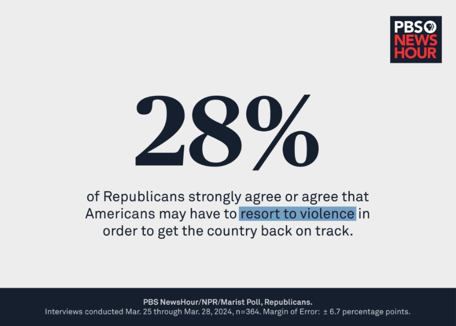 Ser vi nærmere på meningsmålingen så mener 20 prosent av amerikanerne at vold er løsningen. PBS og NPR har funnet at Demokratene er minst sannsynlige til å tro a vold er løsningen, med 12 prosent.