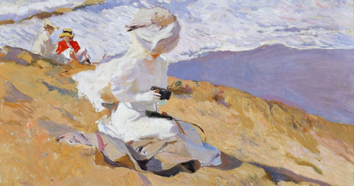 Joaquín Sorolla er særlig kjent som portrett- og genremaler, i en stil som er klart påvirket av impresjonismen. Den avbildede damen holder et kamera som ikke er så lett å identifisere, men det er muligens et Ansco Folding Camera, som var tilgjengelig i 1906.