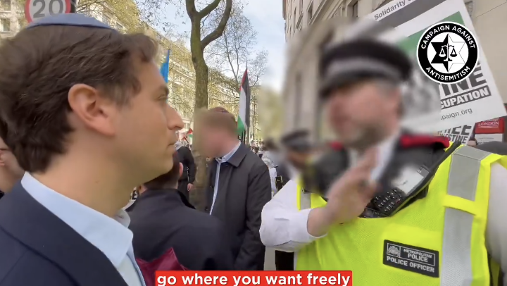 En politibetjent i Metropolitan Police ba en jøde fjerne seg, fordi han så jødisk ut og kunne provosere de jødehatende Hamas-tilhengerne som marsjerer i gatene hver eneste uke.