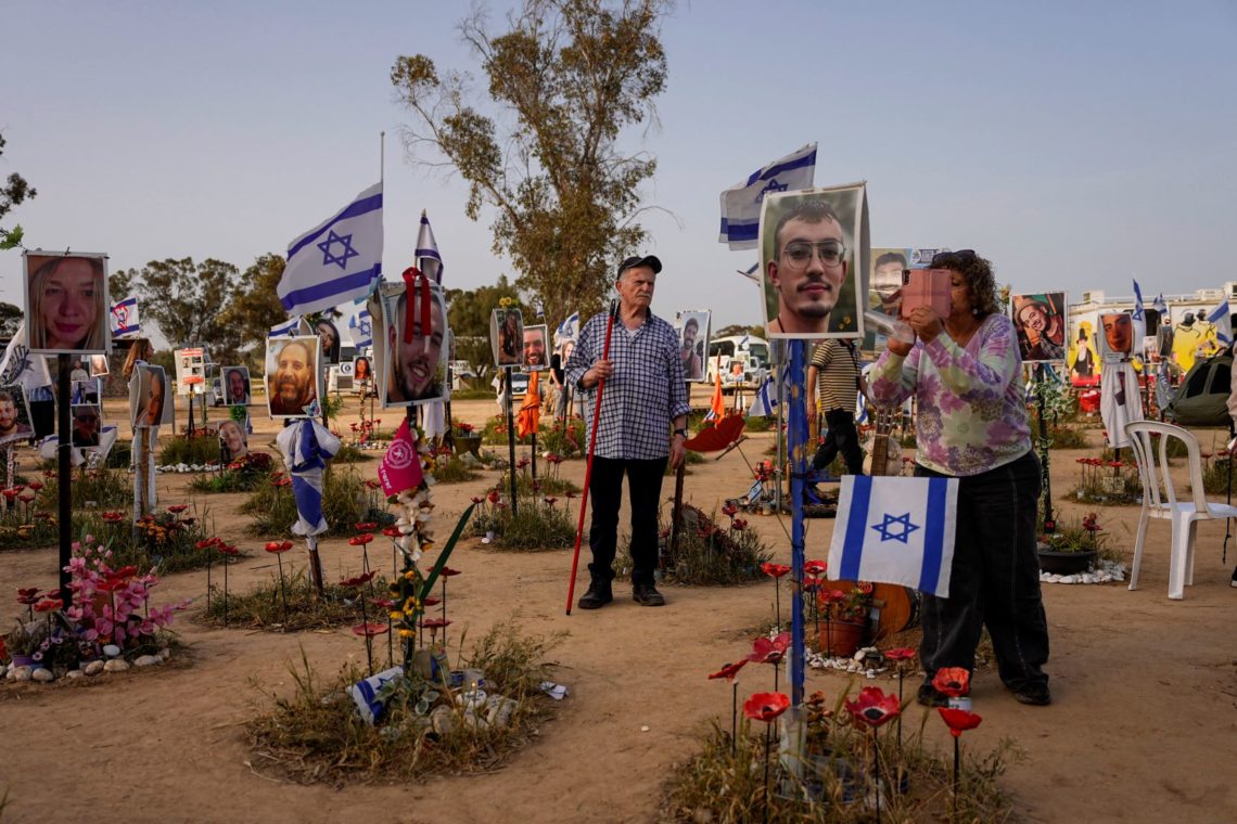 Etterlatte besøker åstedet for massakren under Supernova-festivalen i Israel. Foto: AP Photo/Ohad Zwigenberg