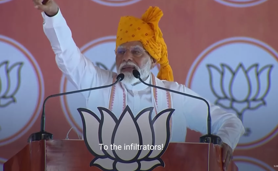 På et valgkampmøte søndag fikk Narendra Modi voldsom kritikk for å spre anti-muslimsk propaganda og konspirasjonsteorier om at muslimer bygger store familier for å erstatte hinduer.