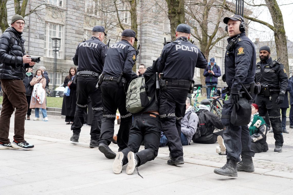 – Vårt muntlige pålegg om å fjerne seg fra inngangspartiene ble ikke etterkommet. Vi har derfor fysisk fjernet dem fra stedet, skriver politiet i Oslo på X / Twitter klokken 11.47.