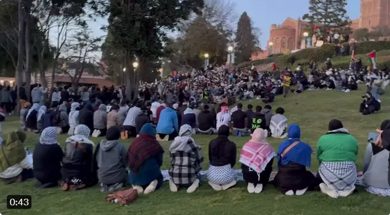 De siste dagene har det sirkulert en video på sosiale medier som hevder å vise hundrevis av studenter som konverterer til islam og deltar i islamsk bønn under pro-palestinske protester ved University of California (UCLA).