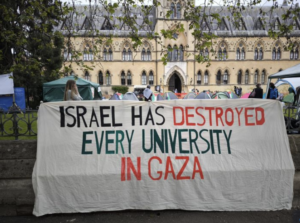 Britiske studenter som protesterer mot krigen i Gaza, må skrive under på et krav om at millioner av palestinere skal få lov til å ta tilbake sine forfedres land i Israel. Dette er «from the river to the sea« i praksis.