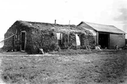 Elling Ohnstads torvhus i Fairdale, Nord-Dakota, 24. juni 1932. Ohnstad var født i Norge og kom til Amerika sammen med sin far og syv søsken i 1882, 12 år gammel.
