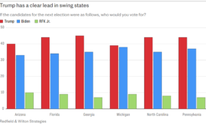 Donald Trump vil få økt oppslutning i fire viktige vippestater dersom han blir funnet skyldig i Stormy Daniels-rettssaken, viser en ny meningsmåling utført av Redfield & Wilton Strategies for The Telegraph.