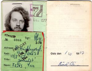Club 7: Mitt frikort på Club 7. Fornyet i oktober/november 1977. Takket være dette fikk jeg sett vanvittig mange gode artister og drukket masse øl. Foto: Privat